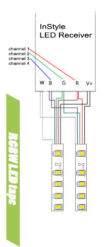 RGBW LED tape = 4 channels (red, blue, green & white)