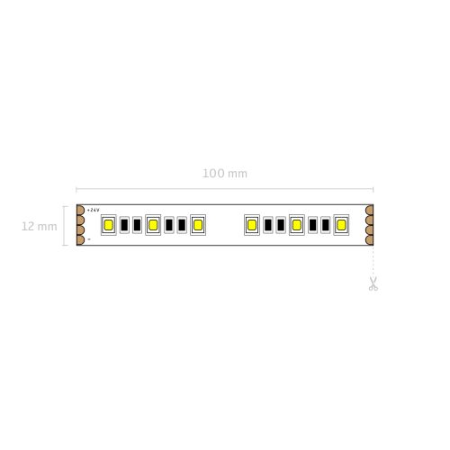 Designed to run on 24V, the strip is supplied in 5m reels with a maximum run length of 10m powered from one end, making it ideal for larger installations. Cut points every 100mm allow flexible sizing to suit your project. Measuring 12mm wide (12.5mm coated) and 2.5mm deep (3mm coated), it’s slim enough to integrate neatly into profiles and recessed channels.