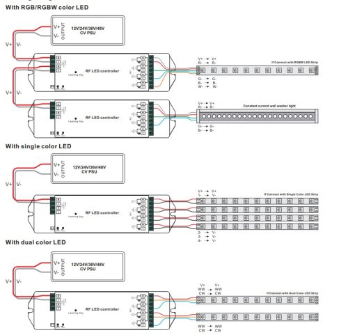 Our multizone receiver works with RGB and RGBW LED tape, and offers the option of wifi connection as well. Using wifi, you don’t even need a controller – you can control your LED lighting through an app on your phone or tablet.