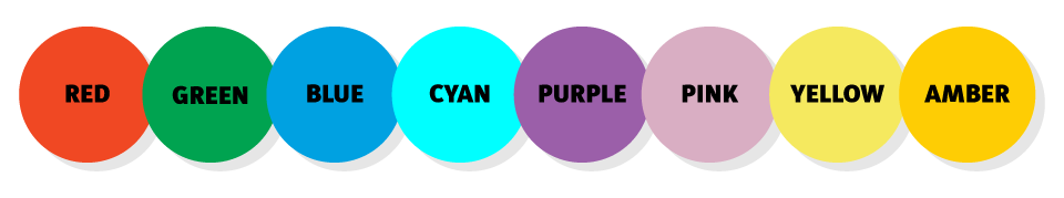 | Colour Options | Red, Green, Blue, Pink, Amber, Purple, Yellow, Cyan |