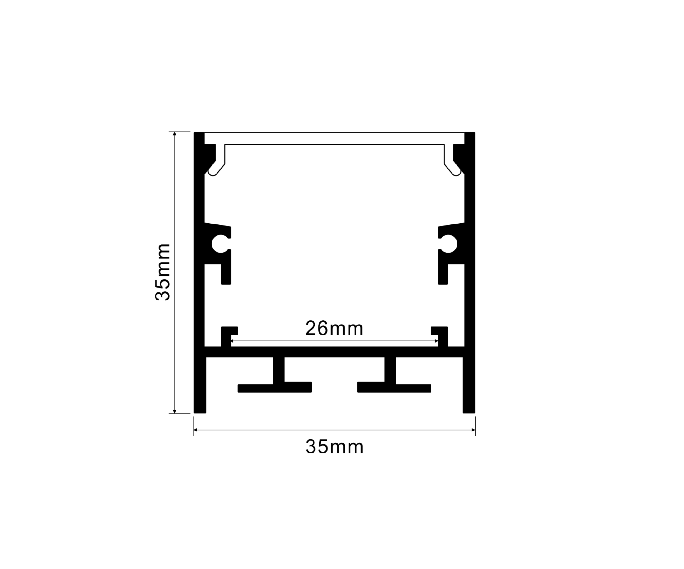 The Large Surface LED profile is a robust aluminium housing designed for high-output LED strip installations that require a clean, professional finish. With dimensions of 35mm wide and 35mm high, it can accommodate LED tape up to 26mm wide, making it ideal for powerful lighting applications.