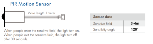 Auto On/Off – Lights turn on with movement, off after 30 seconds of no activity