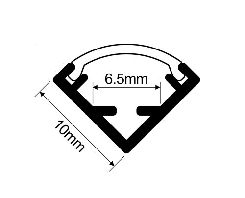 The Slim Corner LED profile is a compact aluminium housing designed for sleek and discreet LED strip installations in angled spaces. Measuring just 10mm wide and 10mm high, it is perfect for accommodating LED tape up to 6.5mm wide, offering a neat finish for smaller lighting applications.