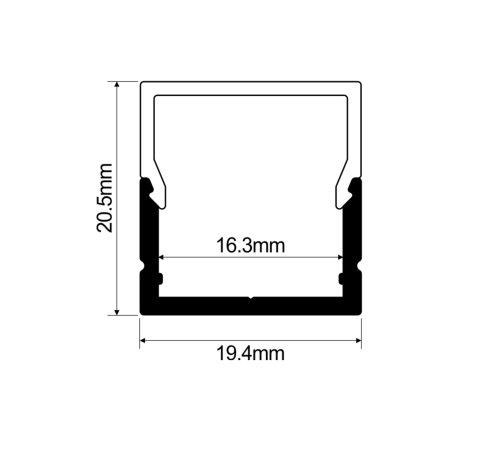 The Tube Surface LED profile is a robust aluminium housing designed to enhance both the appearance and performance of LED strip lighting. Measuring 19.4mm wide and 20.5mm high, it accommodates LED tape up to 16.3mm wide, making it ideal for medium and large lighting installations.